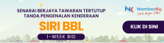 Jabatan Pengangkutan Darat (JPD) ingin memaklumkan orang ramai bahawa Tawaran Tertutup Tanda Pengenalan Kenderaan (TPK) bagi satu (1), dua (2), tiga (3) dan empat (4) angka (1-9999) Siri BBL akan dibukakan melalui NomborKu: Click-and Bid selama dua (2) minggu mulai hari Selasa, 4 November 2025 hingga hari Isnin, 17 November 2025.